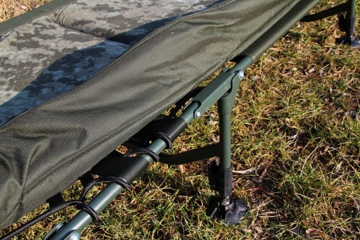 Надзвичайно легке, велике та на 100% плоске ліжко з дуже привабливим цифровим камуфляжним принтом із серії CamoCODE. Надзвичайно товстий і зручний матрац з верхнім шаром, покритим флісом, пропонує найефективнішу систему регулювання жорсткості за допомогою натягу за допомогою еластичної шнурівки знизу. Ще однією перевагою є ніжки з великими регульованими ніжками і можливістю їх далеко висунути.
