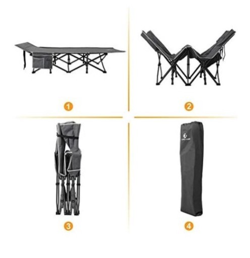- Міцне та довговічне: кемпінгове ліжко має високоміцну сталеву трубчасту опору та трикутну конструкцію. Міцний сталевий каркас і оксфордська тканина 600D x 300D витримують вагу до 600 фунтів.