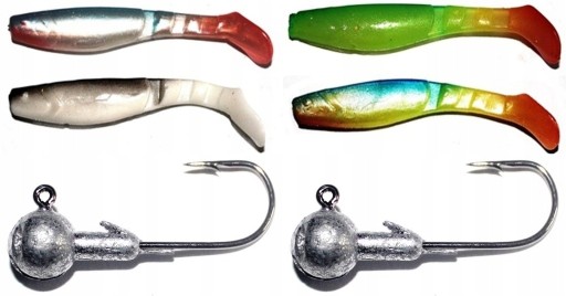 ЧОТИРИ РІЗНИХ КОЛЬОРОВИХ РИПЕРА - 8 см. + ДВІ ДЖИГ-ГОЛОВКИ.
