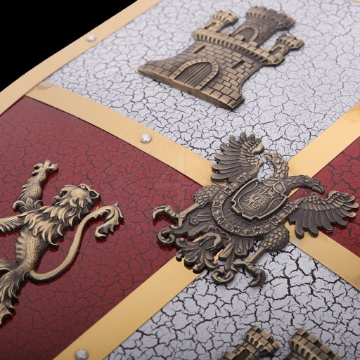 Він має прикраси у вигляді двоголового орла в центрі, двох грифонів і двох замків з трьома вежами навколо.