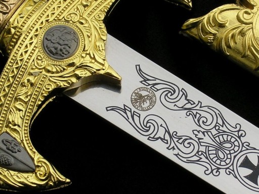 Ручка - металева, багато вигравірувана символами, пов'язаними з орденом тамплієрів
