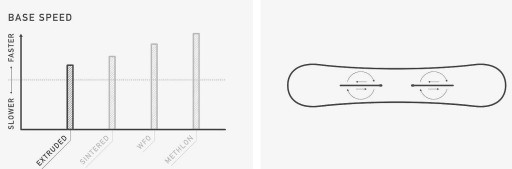 Easy Bevel - забезпечує м'яку та поблажливу дошку з надзвичайно м'яким вигином і опуклою основою, яка піднімає краї від снігу, що робить практично неможливим зачепити край.