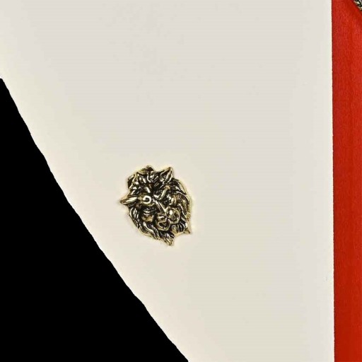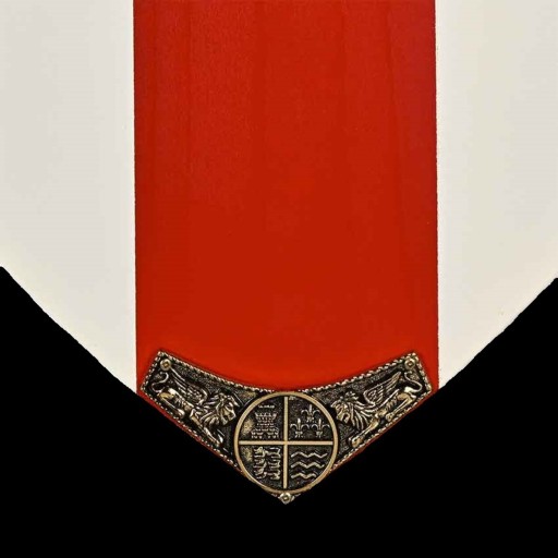 Всередині він прикрашений зображеннями трьох золотих левів. Кольори відповідають прапору Англії.