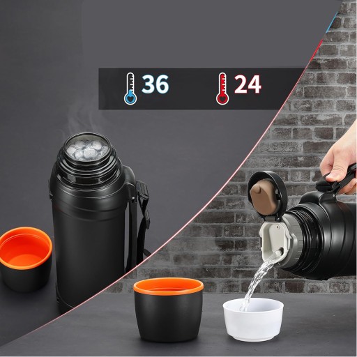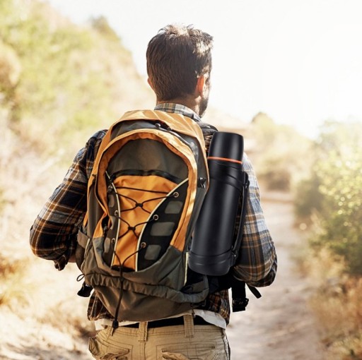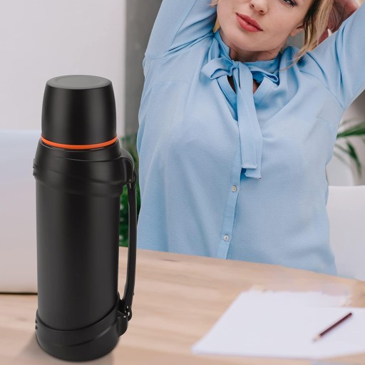 - ☑️Легко носити: міцна пляшка для пиття з нержавіючої сталі дуже приваблива, має практичну та міцну ручку та прихований плечовий ремінь довжиною 110 см, який можна носити в руці або через плече для подвійного використання.