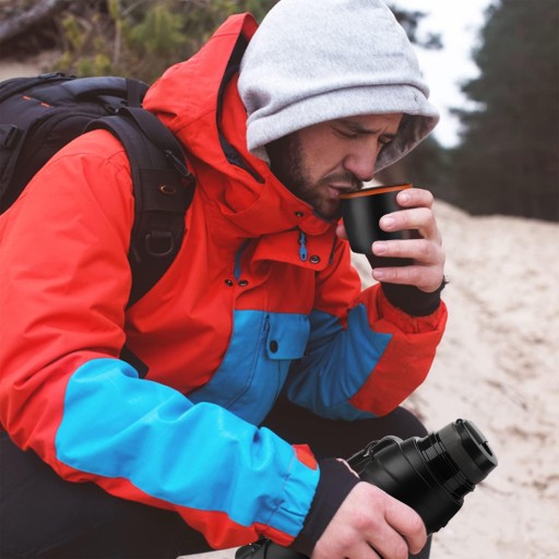 Ізольована кавова чашка з технологією збереження тепла. Завдяки закритій кришці напої залишаються гарячими тривалий час.