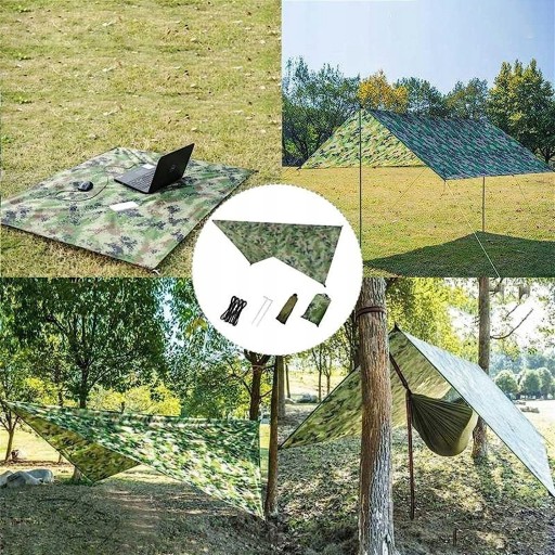 Широке застосування: брезент для кемпінгу можна використовувати як брезент для намету, гамака, кемпінгового притулку, тіньового вітрила, садового навісу, килимка для намету, килимка для пікніка, пляжного килимка тощо. Ідеально підходить для кемпінгу, риболовлі, виживання в пустелі, туристичного туризму, походів, спортивних подій, фестивалі, пікніки та пляжі в будь-яку погоду.