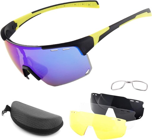 - Оснащений трьома змінними лінзами: жовте світло для нічного використання, сіре поляризоване скло для сильного сонячного світла, а прозоре скло для похмурих днів.