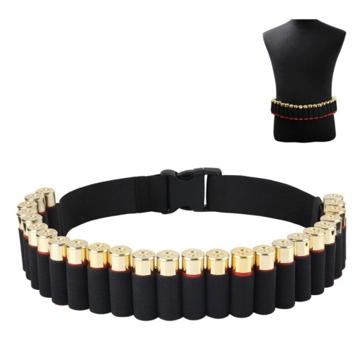 РЕМІНЬ / РЕМІНЬ ДЛЯ БОЄПРИПАСІВ / ПАТРОНІВ - ЧОРНИЙ до 140 см (для калібру 12-20) Чорний ремінь, виготовлений з нейлону, ідеально підходить для тактичного застосування для любителів полювання та інших військових видів спорту на природі. Ремінь вміщає 25 куль. Виріб можна регулювати по окружності - мінімум становить приблизно 85 см, і ми можемо відрегулювати його до окружності приблизно 140 см. БОЄПРИПАСИ, ЗОБРАЖЕНІ НА ЗОБРАЖЕННІ, НЕ Є ЕЛЕМЕНТОМ НАБОРУ