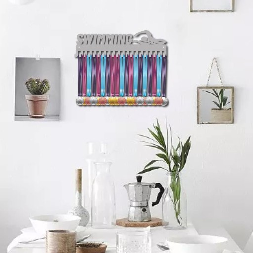 Підставка для медалей з плавання Дизайн цієї підставки для медалей являє собою візерунок плавця, який яскраво демонструє витончені позиції спортсменів на полі. Ваш успіх заслуговує на те, щоб бути показаним в особливому місці. Ми розробили цей тримач для медалей для вас, щоб ви могли з гордістю демонструвати свої медалі, показувати всім, наскільки ви хороші, і нагадувати всім, наскільки ви чудові. УПАКОВКА ТА РОЗМІР 1 шт. з міцною та гладкою поверхнею без гострих країв супер вантажопідйомність до 5 кг 11 фунтів 20 окремих гачків легко підвішувати поверхню тканиною. ЛЕГКО ВСТАНОВИТИ ① Вирівняйте гвинти олівцем. ② Використовуйте електродриль зі свердлом 5 мм, щоб зробити отвори в стіні. ③ Встановіть гак на місце та затягніть гвинти. 2 гвинти та гайки з гачком для медалі. Подарунки, які не підлягають обміну. Шоу медалістів є популярним подарунком для всіх ентузіастів спорту на витривалість, спортсменів-чемпіонів і переможців. Вручення медальйонів - ідеальний подарунок на День святого Валентина, День батька, День народження, День подяки та Різдво. Цей настінний дисплей для медалей нагадає вам про весь сміх і незабутні моменти. Власник авторських прав не може використовувати без дозволу