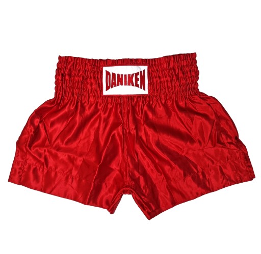 Тренувальні шорти TSB-02 з високоякісного сатину, 100% поліестеру. Повністю червоні шорти з логотипом DANIKEN на талії. З боків мають прорізи, що забезпечує комфорт і свободу рухів під час копання. На талії вшита дуже широка гумка - 10 см - і шнурок.