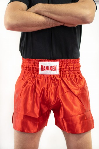 Тренувальні шорти TSB-02 з високоякісного сатину, 100% поліестеру. Повністю червоні шорти з логотипом DANIKEN на талії. З боків мають прорізи, що забезпечує комфорт і свободу рухів під час копання. На талії вшита дуже широка гумка - 10 см - і шнурок.