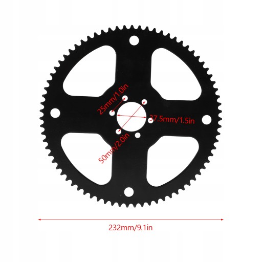 1. Параметр: Зірочка має 75 зубів, розмір підходить для ланцюга №35. Він має 6 внутрішніх монтажних отворів, які полегшують установку, заощаджуючи час і енергію.