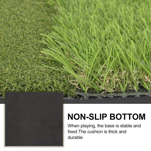 Килимок для гольфу преміум-класу дає вам відчуття справжнього газону, допомагаючи вам щоразу тренуватися практично, а неслизька основа запобігає ковзанню килимка. Виготовлений з високоякісного та практичного нейлону та гумового матеріалу, який можна згорнути, легко зберігати та переносити. На килимку для гольфу можна грати будь-де в приміщенні та на вулиці.