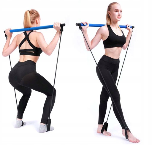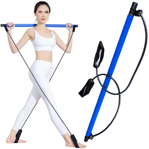 Тренувальна планка з ремінцями/еластичними стрічками для пілатесу. Багатофункціональна планка дозволить виконувати вправи для всього тіла, не виходячи з дому. Завдяки своїй складній конструкції він ідеально підходить як портативний тренувальний пристрій - ідеально підходить для подорожі, відпустки тощо.