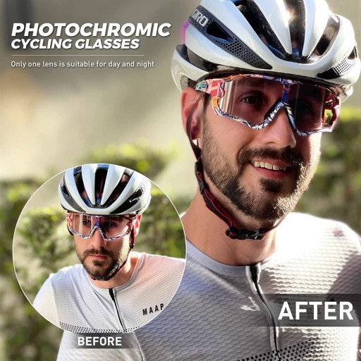 【Відчуття комфорту】Ці фотохромні велосипедні окуляри оснащені гнучкими дужками, які підходять для різних форм обличчя. М'які гумові носові подушечки не ковзають. Вбудована конструкція короткозорої оправи, зручна для встановлення окулярів.