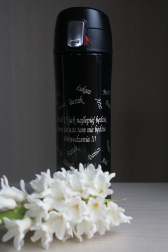 Елегантна металева термокружка з вашим гравіюванням в дерев'яній коробці з гравіюванням.