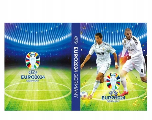 - Видання Євро-2024: альбом з унікальною обкладинкою, на якому зображено зображення на тему Євро-2024, ідеально підходить для будь-якого футбольного фаната чи колекціонера карток.