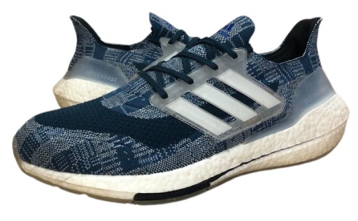 Кросівки Adidas ULTRABOOST 21 PRIMEBLUE (FX7729) Core Blue/ Ftw White/ Core Navy, розмір устілки 46, загальний розмір 29,3. Відмінний стан Цей продукт виготовлено з Primeblue - високоякісного переробленого матеріалу, частково виготовленого з пластику Parley Ocean. Верх на 50% складається з текстилю, і 75% цього матеріалу - Primeblue