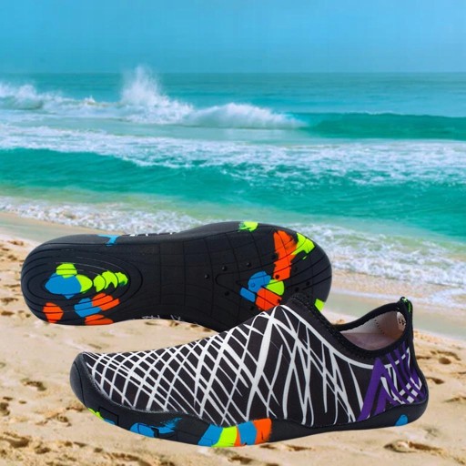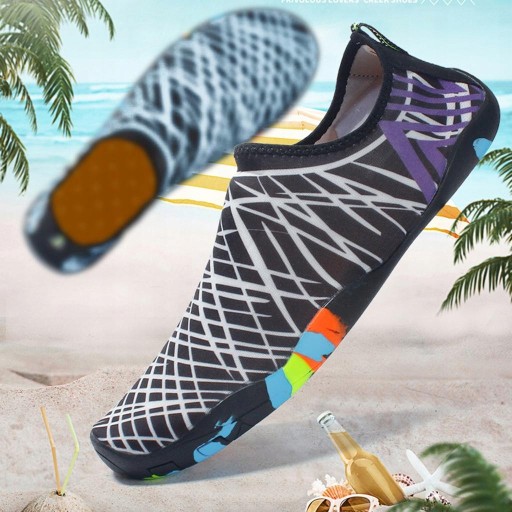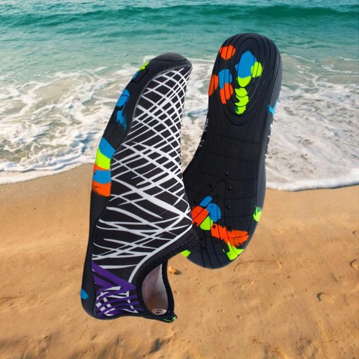 : Безпека: підошви виготовлені з матеріалів EVA з відмінною повітропроникністю та протиковзанням, і широко використовуються у виробництві спортивного взуття Можна носити перед жарким пляжем Зручний матеріал: верх гладкий та еластичний, виготовлений з матеріалу для дайвінгу з повітропроникність і здатність швидко висихати Так само, як і шкарпетки, це робить вас чудовою гнучкістю та комфортом у носінні Взуття стискається, дуже зручно носити, виходите на вулицю Унікальний дизайн: гладка горловина взуття, створена для догляду за вашими щиколотками Унікальний дизайн підошви, заснований на ергономічній формі, яка має хороші характеристики в подушці, протиударний. Різні стилі та розміри: наше взуття має різні розміри, які підходять для дорослих, продукт містить посилання на таблицю розмірів. Випадки: ідеально підходить для пляжу, плавання, серфінгу, басейн, вітрильний спорт, вода, катання на човні, каякінг, пляжний волейбол, риболовля, прогулянки, автомобіль, відпочинок тощо. Особливо для сімейних поїздок!