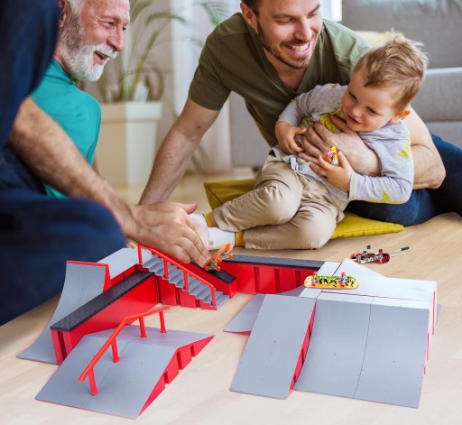- - Розроблений для зручного перенесення, цей мініатюрний набір легкий і зручний для транспортування. Усі аксесуари для кріплення входять у комплект, і набір скейт-парку можна легко зібрати без інструментів.