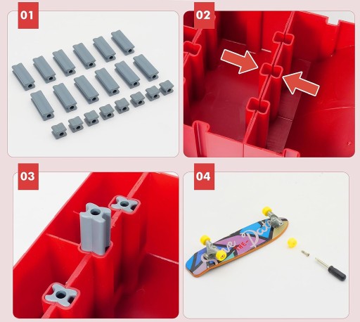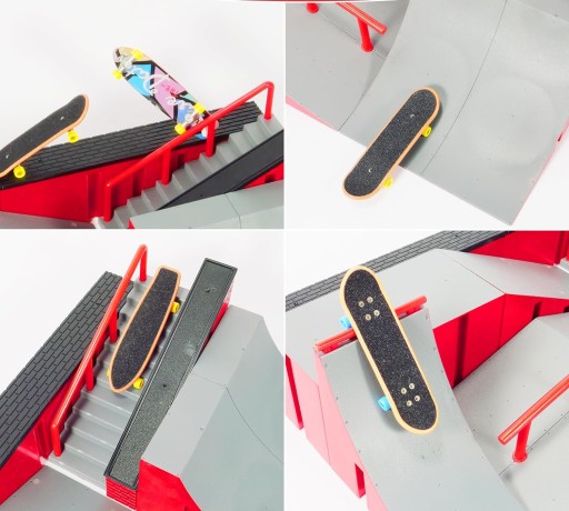- У набір входить пальчикова інструкція для міні-скейтборду. Доступно багато моделей кріплення. Побудувати власний скейтборд-парк дуже просто. Його також можна комбінувати з набором для скейт-парку інших брендів, щоб створити величезний скейт-парк для гри пальцями