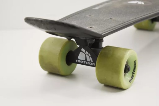 Скейтборд б/в, справний і в хорошому візуальному стані. Має видимі сліди повсякденного використання у вигляді забруднень та незначних потертостей.