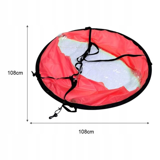 Відмінний, діаметром 42 дюйми (108 см), може ефективно послаблювати ультрафіолетове випромінювання та хронічне гаряче сонце під час плавання. Завдяки металевим карабінам між ременями та човном вітрило вашого байдарки буде прикріплено вами.