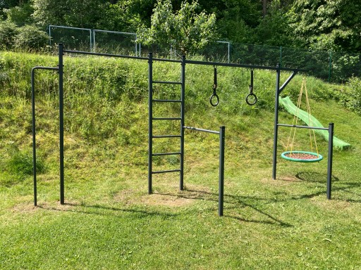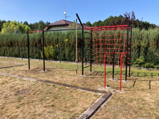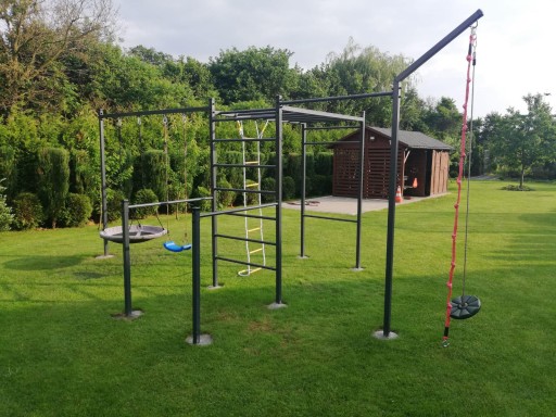 - Такі аксесуари, як гімнастичні кільця, мотузка, гніздо лелеки або сітка для скелелазіння, зображені на фото, не входять до набору - у вартість входить сама конструкція