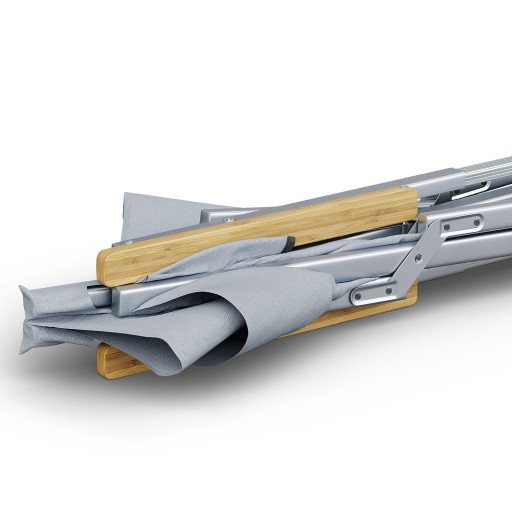 - Виготовлений з міцної тканини 600D, легкого алюмінію та підлокітників з букового дерева