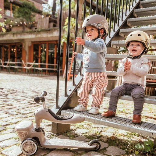 Захисний шолом Scoot & Ride надлегкий, інноваційний і стильний. Регулюється за допомогою циферблата, розмір підходить для окружності голови від 45 до 51 см. Шолом підходить дітям від 1 року. Незамінний під час їзди на велосипеді, самокаті, балансирі або велосипеді.