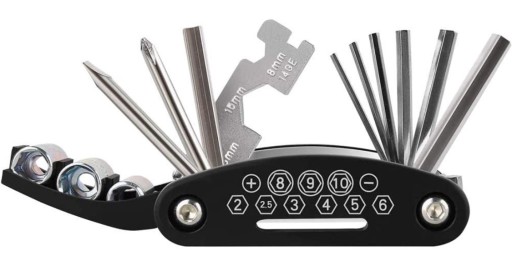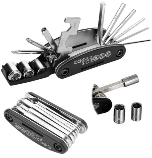 Набір із 16 основних інструментів, які допоможуть обслуговувати ваш велосипед тощо. Інструмент розроблений таким чином, щоб у складеному вигляді поміщався в кишеню.