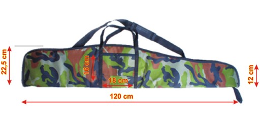 Внутрішня довжина чохла становить до 120 см, що дозволяє носити більшість пневматичних гвинтівок з встановленим прицілом.