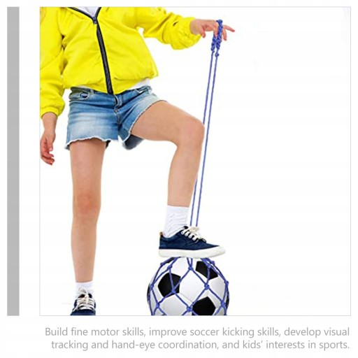 Це футбольний тренажер, виготовлений із високоякісного матеріалу для практичного та довговічного використання. Ви можете помістити футбольний м’яч у цю сітку, і цей сітчастий мішок може запобігти бігу футбольного м’яча, що є хорошим інструментом для тренувань. Удосконалюйте спортивні здібності вашої дитини, практикуючи удари ногами та зміцнюючи тіло.