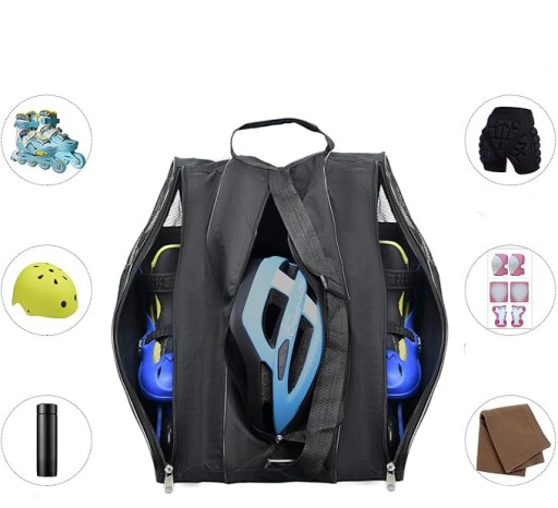 ВЕЛИКА МІСТЬ: Сумка для роликових ковзанів, розділена на 3 відділення Середнє з протекторами, наколінниками, рукавичками та пляшкою з водою Дві бічні кишені для ковзанів або роликових ковзанів