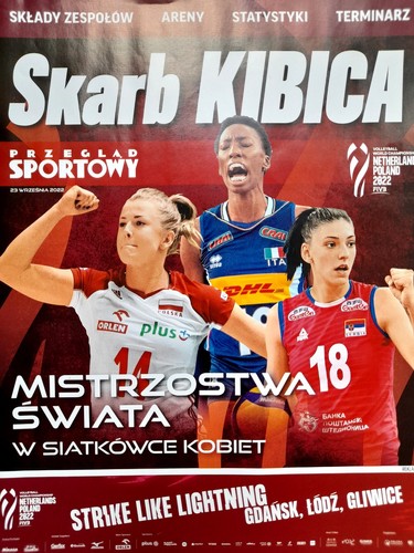 СТАН: ДУЖЕ ДОБРИЙ Рік видання: 2022 Кількість сторінок: 28 Папір: крейдований Колір: так: Скарб фаната, підготовлений командою журналістів «Przegląd Sportowy» до фіналу Чемпіонату світу з волейболу серед жінок 2022 року, який проходитиме в Нідерландах та Польщі . У виданні представлено кожну з команд (склад команди, тексти про команду та головного гравця, біографія тренера з фото, інформація про успіхи, графіки з основним складом). Крім того, «Скарбниця вболівальників» містить додатковий текст про збірну Польщі, інтерв’ю з тренером збірної Польщі Стефано Лаваріні, детальну презентацію кожного польського волейболіста, розклад турнірів, презентацію арен Чемпіонату світу та все -хронологічна статистика Чемпіонату світу з волейболу серед жінок.