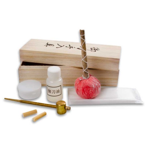 Набір для чищення для догляду та обслуговування катани (японського меча). Ідеально підходить для підтримки леза в хорошому стані. Всі елементи набору для прибирання поміщені в дерев'яний ящик.