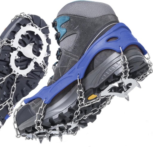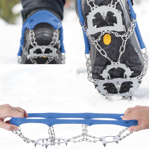 - Крампи (ланцюги) проти ковзання оснащені 13 сталевими шипами (на кожному черевику).
