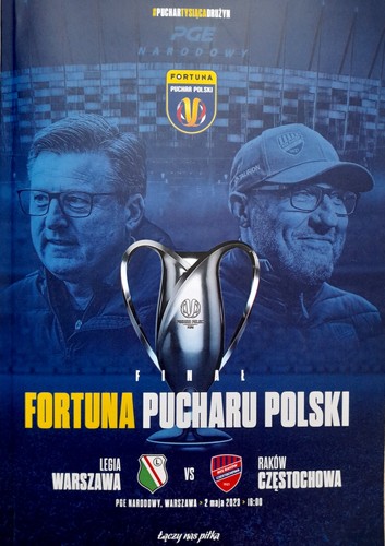 : Офіційна програма Польського футбольного союзу на фінал Кубка Польщі 2023, у якому варшавська «Легія» після пенальті перемогла «Раків» з Ченстохови. Програма включала, серед іншого: склади обох команд із фотографіями кожного гравця та члена тренерського штабу, інтерв’ю з тренерами «Ракува» та «Легії» (Марек Папшун та Коста Руняїч) та колишнім гравцем обох клубів (Павло Скшипек), тексти, що анонсують матч та представляють обидві команди та історію їхніх успіхів у Кубку Польщі, цікаві факти та цифри, пов’язані з ПП та багато інших матеріалів щодо фінального матчу та змагань Кубка Польщі Fortuna у сезоні 2022/2023.