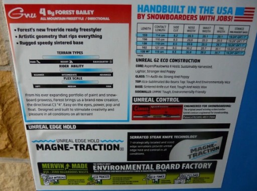 - Зроблено вручну в США на Mevin Mfg, найбільш екологічній фабриці сноубордів у світі. Це стосується матеріалів, вторинної переробки та енергії, що живить фабрику.