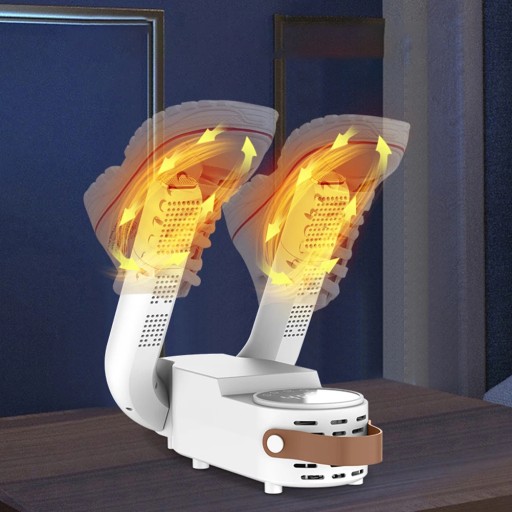 - Швидке нагрівання за 15 секунд і циркуляція тепла на 360° для ефективного видалення вологи, поту та неприємного запаху з взуття.