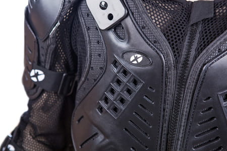 Широка броня з додатковим захистом ключиць. Підвищена щільність композиту, з якого виготовлені захисні панелі. Опорна частина виконана з швидковисихаючої сітки. Додаткове регулювання обхвату грудей і силовий ремінь дозволять броні ідеально сидіти на будь-якій фігурі.