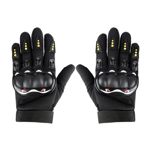 На долоні рукавичок для скейтборду є зерниста матова тканина, яка захищає суглоби пальців і тильну сторону долоні від тертя, десять пальців можуть додати маленькі повзунки