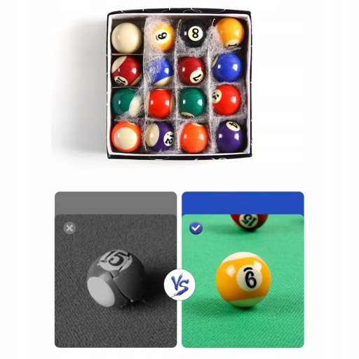 Пакет включає: 1 більярдний стіл, 15 кольорових куль, 1 биток, 2 більярдні кия, 1 крейда, 1 трикутна підставка.