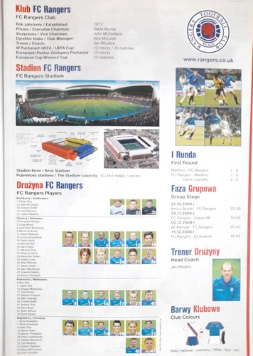 Аміка Вронкі - програма Глазго Рейнджерс УЄФА 2004