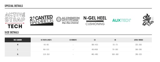 Абсолютно нові кріплення NX2-Carbon є найбільш чуйними кріпленнями. Це надзвичайно жорстка та легка конструкція, розроблена для бомбардування крутих пагорбів, вирізання рейок та поїдання всіх типів поверхонь за будь-яких умов. Прив’язки NX2-Carbon є найбільш чуйними прив’язками в колекції FLOW. Це наджорстка і легка конструкція, призначена для подолання крутих схилів, вирізів на трасі і для їзди на високих швидкостях. На основі легендарної підошви NX2 було вдосконалено кілька компонентів - починаючи з цілісної ложки Asym Uniback з домішкою карбону, яка забезпечує чудову посадку та винятковий контроль на краю п'яти.