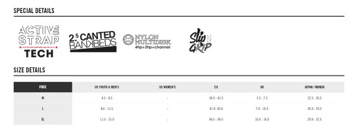 - BANKBED 2,5° / Накладка на всю базову поверхню з амортизаційного еластомеру EVA зі складкою 2,5° і регульованим розширенням передньої панелі оптимізує посадку, фіксацію та передачу енергії.