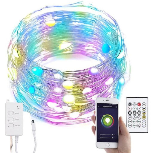 1. 100 світлодіодів RGB, що забезпечують кольорове світло в 16 мільйонів кольорів.Керування освітленням у 3 режимах навіть під час відтворення музики: завдяки блоку керування з мікрофоном. Керуйте світлом за допомогою сумісності з Amazon, Google Home і сумісними колонками за допомогою голосових команд. Довжина: 10 м, Вага: 165 г.