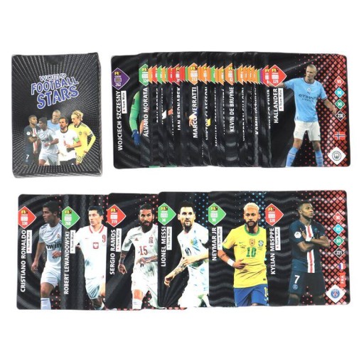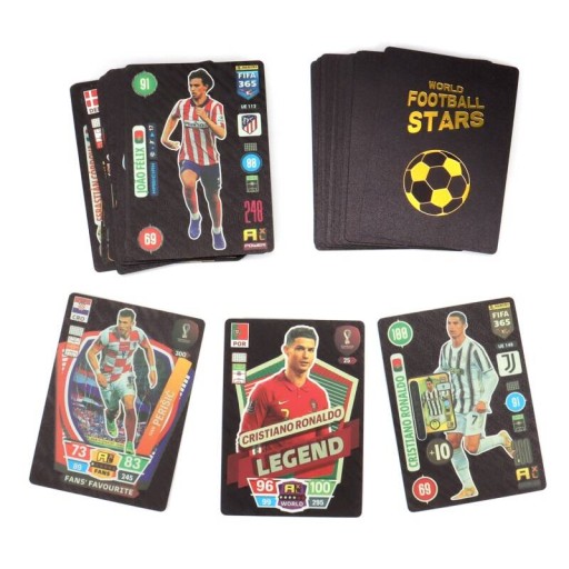 - Підкресліть свою любов до футболу та виведіть своє колекціонування на новий рівень за допомогою наших чорних футбольних карток. Кожна картка - це не тільки данина поваги улюбленому футболісту, а й можливість помилуватися унікальним дизайном і красою золотого покриття. Замовте свій набір сьогодні!
