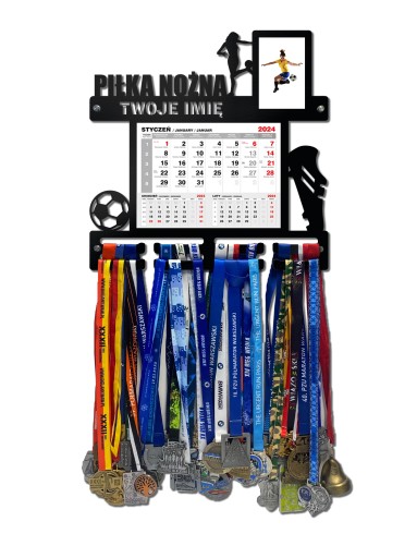 Вішалка для медалей ФУТБОЛЬНА з календарем та іменна фоторамка 10х15