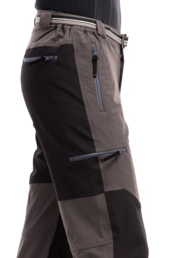 Технічний крій штанів не сковує рухів, а додаткова ластовица в промежині та профільовані коліна забезпечують зручність та комфорт навіть під час активних занять. Критичні місця, такі як задня частина штанів, внутрішня сторона гомілок і коліна, посилені тканиною Ripstop, надзвичайно стійкою до стирання та механічних пошкоджень. Штанини розстібаються до середини ікри завдяки вшитим блискавкам, а їх нижня окружність регулюється за допомогою шнурків зі стопором.